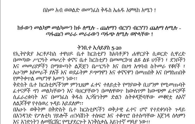 የመግለጫው ሙሉ ቃል ከታች አያይዘን አቅርበነዋል።